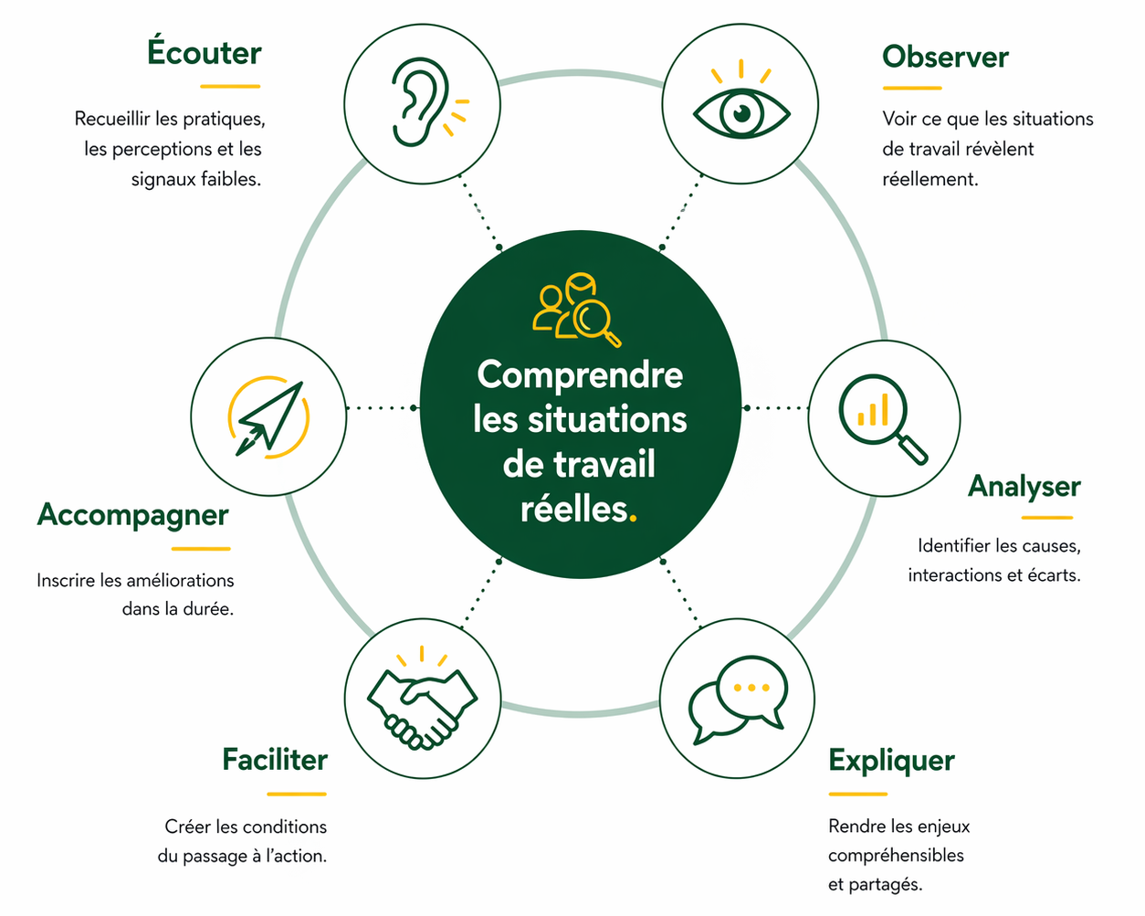 Elle commence par l’observation des situations de travail, des contraintes du terrain et des écarts entre le prescrit… et le réel.